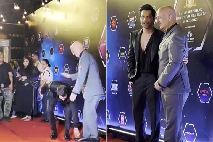 Varun Dhawan is an actor who is loved by all for his kind nature. Recently, he displayed this quality at the Dadasaheb Phalke International Film Festival Awards. A video has been doing the rounds on the internet in which he is seen touching Anupam Kher's feet on the red carpet. The senior actor kissed Varun's forehead and showered him with blessings. Varun's gesture has touched many hearts.
