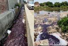 Stretch of Hindon river turns red due to pollution at Bahlolpur in Noida