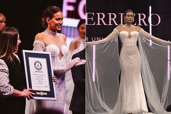 Bridal dress with 50,000+ crystals sets new Guinness World Record