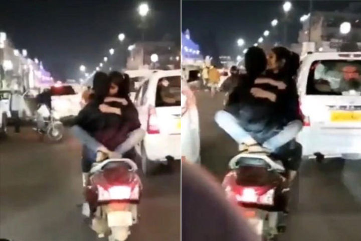 Couple romancing while riding scooter in Hazratganj arrested after video goes viral