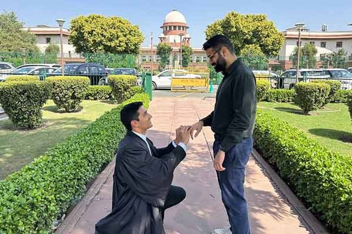 Day after Supreme Court denied marriage rights to LGBTQIA+ community, lawyer gets engaged to partner in front of it