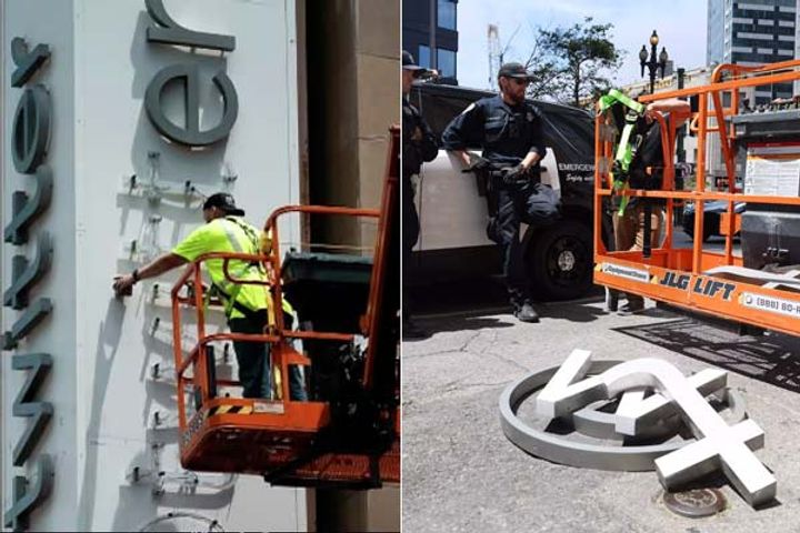 Elon Musk tries to remove Twitter sign letters from X headquarters in San Francisco, police halts work