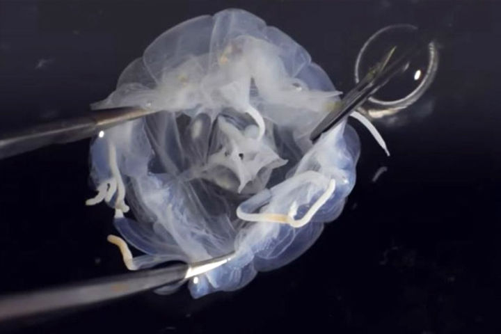 Researchers have discovered a new species with 24 eyes! In Hong Kong's Mai Po Reserve, researchers from Hong Kong Baptist University (HKBU) identified a brand-new species of jellyfish in a muddy pond. The research team worked along with Ocean Park Hong Kong, WWF-Hong Kong, and the University of Manchester. The body of the newly discovered species is less than an inch long and has three tentacles. It belongs to the family of box jellyfish.