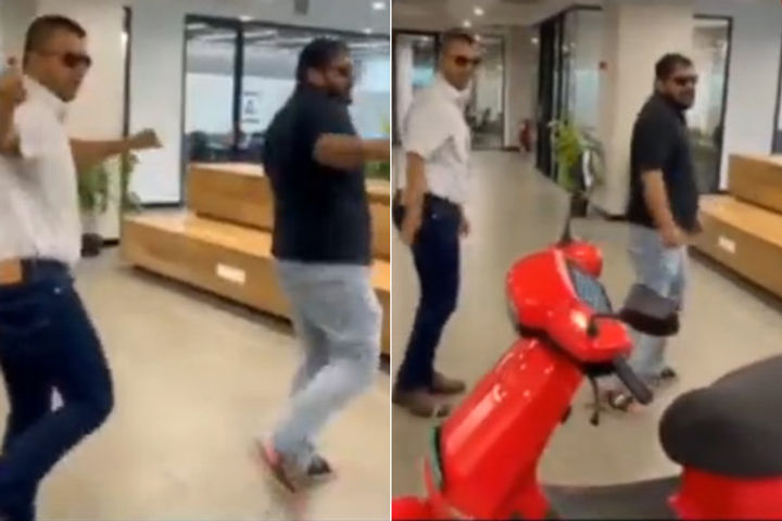 Ola CEO and co-founder Bhavish Aggarwal was seen dancing to Hardy Sandhu's Bijlee Bijlee with Slokarth Dash, Head of Strategy and Planning. The duo started dancing while testing the music feature in MoveOS 2.0, the new operating system for Ola Electric Scooters. Aggarwal can be seen grooving to Hardy Sandhu’s 'Bijlee Bijlee' beat wearing cool sunglasses in the viral video. The duo sync, nail the step of the popular song.