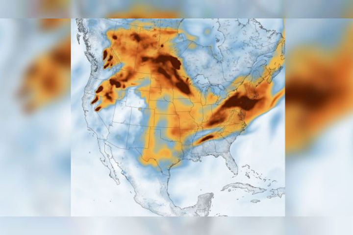 Wildfire smoke clouds cover huge areas of the United States, from the West Coast to the Atlantic Ocean, according to NASA satellite photos. The two pictures were released on July 23 by NASA's Earth Observatory. In a statement, Ryan Stauffer, an atmospheric scientist at NASA's Goddard Space Flight Center in Maryland, said, "That's a scale of particle pollution that New York City hasn't experienced in more than a decade."