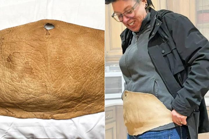 Katie Taylor, 52, a woman from the United Kingdom, underwent an intense weight loss journey, shedding an impressive 38 kgs. She then opted for surgery to remove the loose, baggy skin from her stomach, a side effect of rapid fat-shedding. However, instead of discarding it, she chose to turn it into an art project, redefining the term "body art."