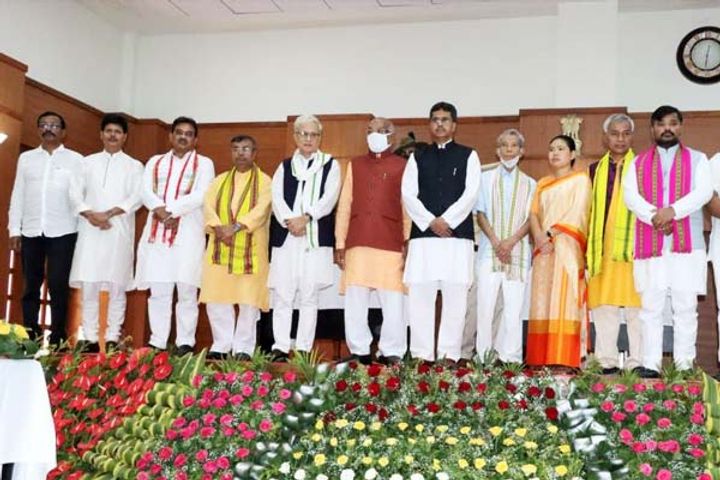 A day after new Chief Minister Manik Saha assumed office, altogether 11 MLAs - nine from the BJP and two from the IPFT - took oath as cabinet ministers of Tripura here on Monday. Governor Satyadeo Narain Arya administered oath to 11 ministers during a ceremony at the Raj Bhawan. Of the 11 ministers, nine were in the Council of Ministers headed by former Chief Minister Biplab Kumar Deb, who resigned on Saturday.