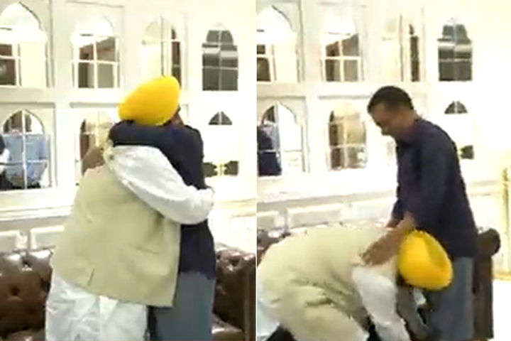 The day after Aam Aadmi Party's massive victory in the state of Punjab Punjab CM candidate Bhagwant Mann arrived in Delhi to meet AAP national convener Arvind Kejriwal and Manish Sisodia. In the first meeting with Kejriwal after the assembly election results were declared, Mann touched his feet while Kejriwal welcomed him with a hug. Mann also touched Manish Sisodia's feet and received a hug in return.