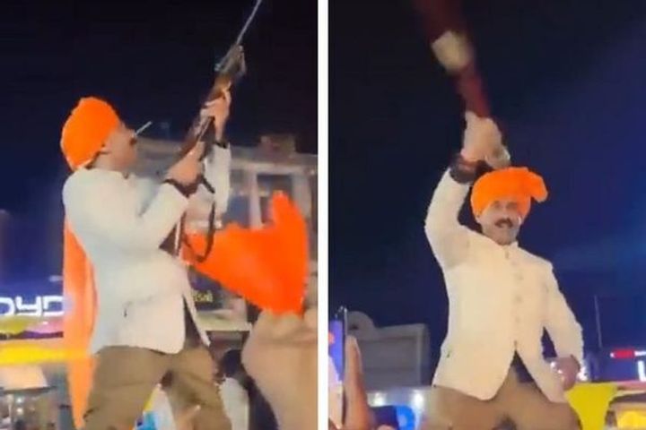 Newly elected BJP MLA Chaitanya Zala waves sword, fires in the air with rifle