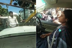 Police drags car of YSRTP Chief Sharmila Reddy with the help of a crane, even as she sits inside it