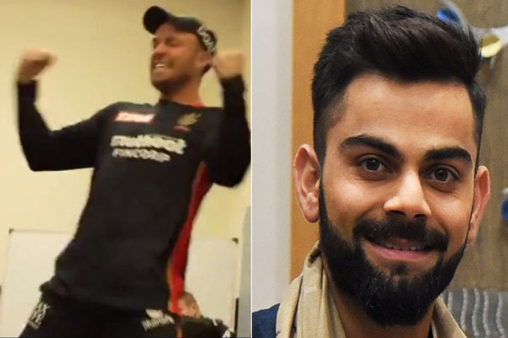 On Sunday, RCB cemented their position at number three with their sixth win this season out of 10 matches. As a part of celebration, AB de Villiers, RCB’s stalwart for more than a decade, imitated Kohli’s celebration. The 32-year-old Virat throws his hands and punches the air while showing his emotion and passion. De Villiers gave his captain a warm hug and then copied his style of celebrating inside the dressing room