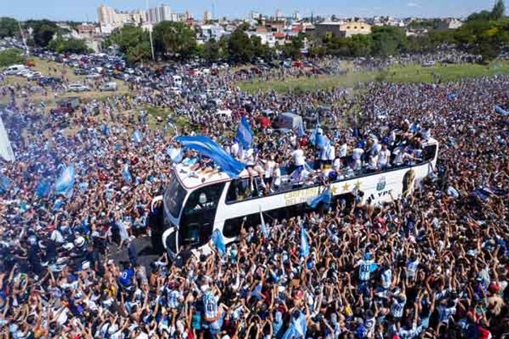 Victory celebrations of the World Cup winning Argentina team were marred by the death of a 24 year old fan as celebratory chaos reigned the streets of Buenos Aires. The victory parade was cut short after fans jumped onto the top of the bus carrying the players. Lionel Messi and his World Cup winning team had to be evacuated by a helicopter after fans threw projectiles and tried to jump on to the bus.
