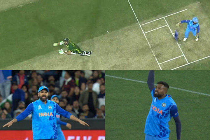Masood could only top edge an ugly heave and it could've been a possible catch for India. However, while in the air, the ball hit the spider cam only for the Indian fielders to leave bemused. Rohit Sharma and Hardik Pandya were clearly not happy with what transpired in the middle with the latter showing off his anger clearly. Even the Indian skipper was agitated seeing the Pakistan batters run.