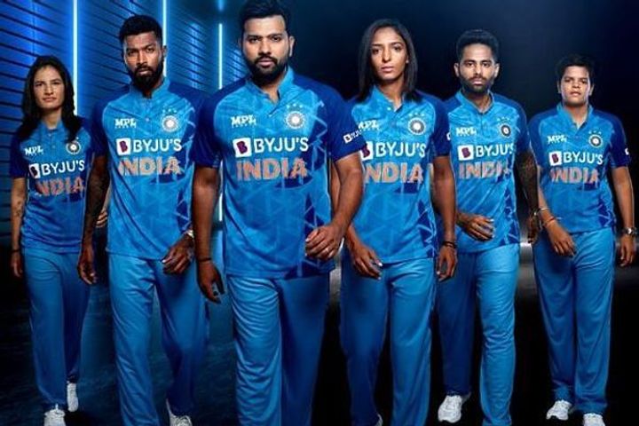 BCCI on Saunday introduced team India's new jersey for the upcoming 2022 T20 World Cup ahead of India's T20I against Australia. India will also don the same jersey during their T20I match against Australia and South Africa. The new Team India jersey was unveiled in Mumbai at 8 PM live on MPL's Instagram platform, which is also their official sponsor.
