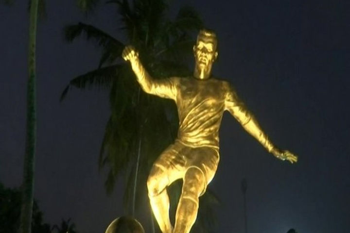 A large brass statue of Cristiano Ronaldo which was unveiled at a park in Goa's beach village of Calangute, has created a stir in the coastal state over the footballer's Portuguese linkage. The statue, which was inaugurated on Tuesday, with the aim of inspiring youngsters to emulate the maestro, triggered black flag protests at the site, with protesters accusing the state authorities of neglecting local football legends.
