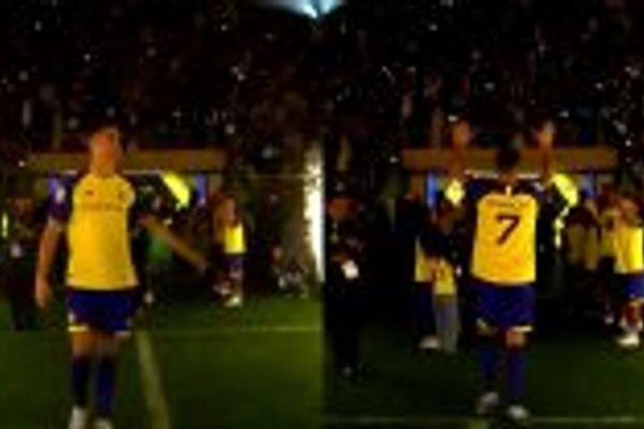 Cristiano Ronaldo has been unveiled as an Al-Nassr player in front of a massive crowd at the Mrsool Park in Riyadh, on Tuesday. The Portugal star wore the club's yellow and blue strip and walked out of the tunnel in the stadium as fans cheered him on. His entrance was marked by a dazzling display of fireworks on both ends of the tunnel as he came out to a huge pop from the crowd and clapped fans' hands on the way out.