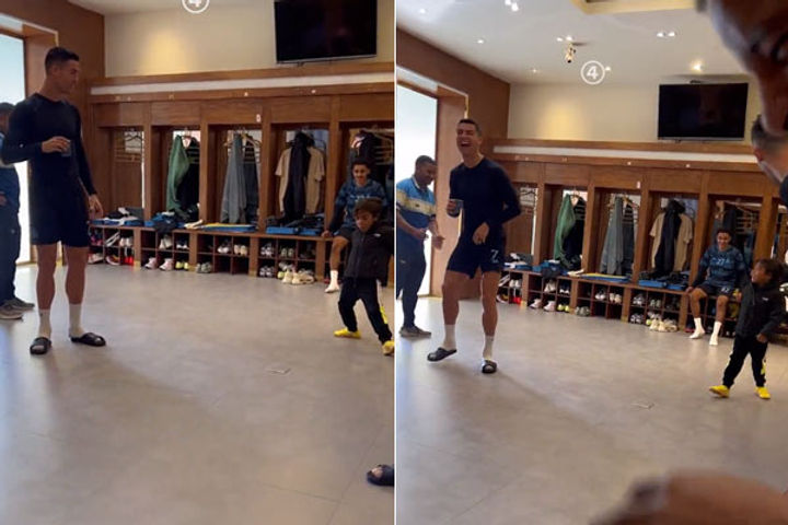Cristiano Ronaldo is known for his signature 'Siiuuu' celebration and it is imitated by millions of people across the world. The latest person to pull off the celebration was Ronaldo's new Al-Nassr teammate's son. Anderson Talisca's son, who is a Ronaldo fan, pulled off the celebration perfectly in front of the entire team. The imitation left Ronaldo in splits.