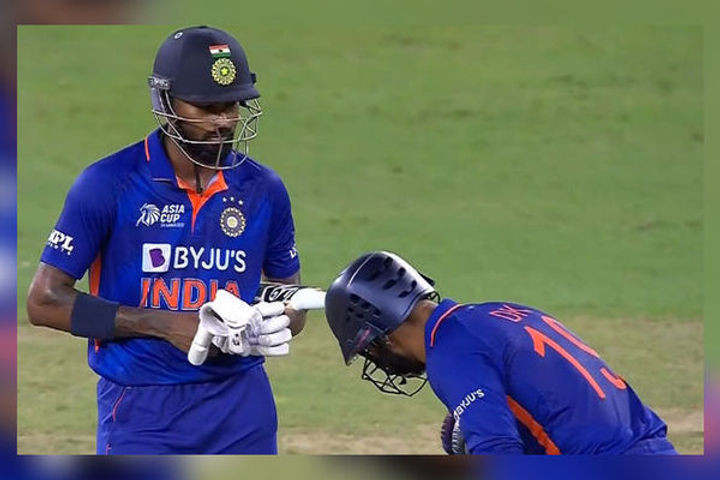 Dinesh Karthik bows down to Hardik Pandya after finishing the game vs Pakistan