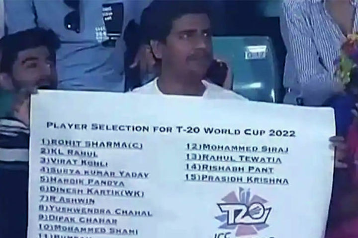 An incident took place in the 58th game of IPL 2022 between Rajasthan Royals and Delhi Capitals, where a fan was seen holding a poster with Team India's 15-member squad on it. The photo went viral on social media. This is the year of the T20 World Cup. The Indian cricket team will be participating in ICC T20 World Cup 2022 in Australia.