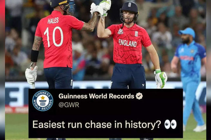 Team India's exit form the T20 World Cup sent social media in frenzy and the major talking point was how the Rohit Sharma-led team capitulated against an agressive England in the second semifinal of the T20 World Cup. Highlighting the easy with which England won the match, the Guinness World Records' official Twitter handle shared a cheeky post. "Easiest run chase in history?" the record keeping organisation tweeted.