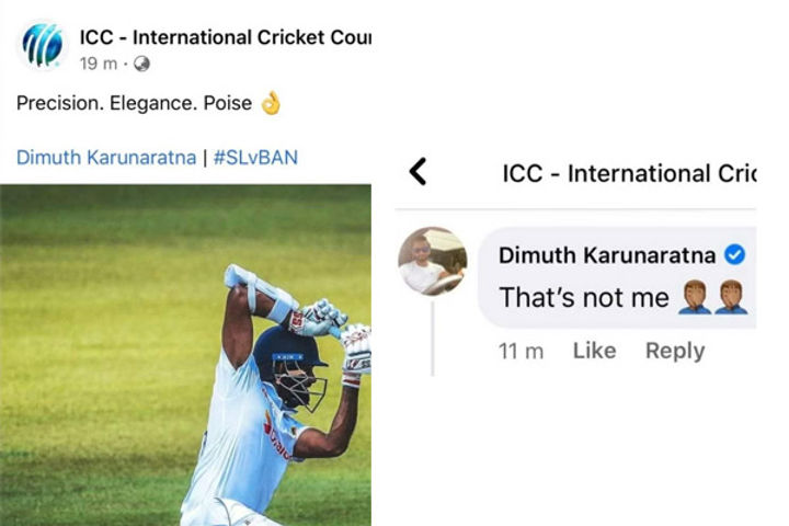 ICC makes a blunder while praising Dimuth Karunaratne on Facebook; he responds