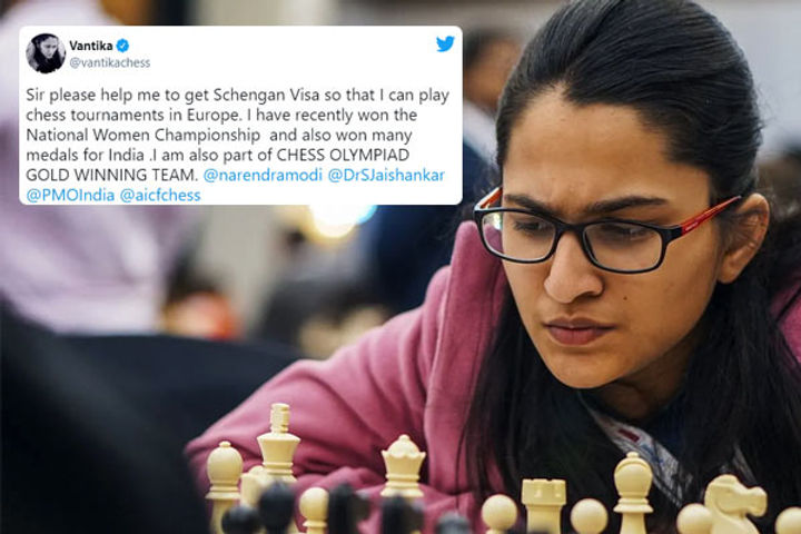 National women's champion and a part of India's chess olympiad gold medal winning team, Vantika Agrawal has aksed for help in order to attain a Schengen visa so that she can compete at chess tournaments in Europe. 'Sir please help me to get Schengan Visa so that I can play chess tournaments in Europe. I have recently won the National Women Championship and also won many medals for India', she tweeted.