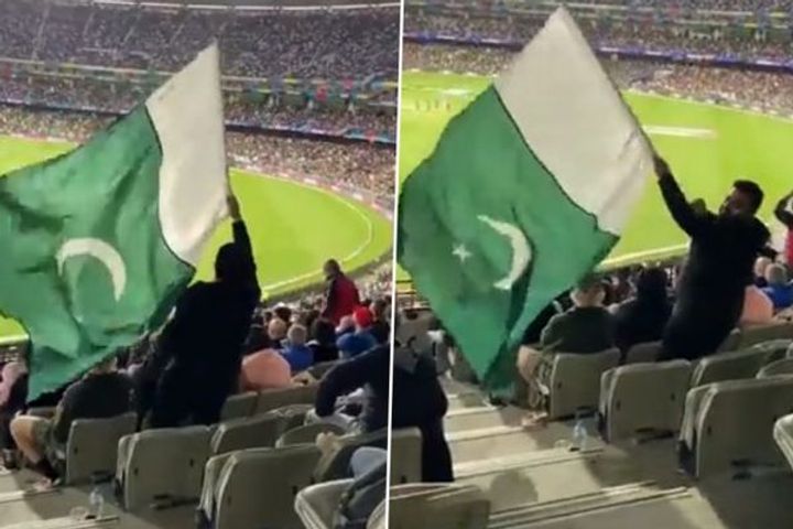 The mega encounter between India vs Pakistan in the T20 World Cup 2022 has seen frames of different colours. Amidst those, a viral video has emerged where a Pakistani fan was spotted waving the Pakistani flag upside-down and Indian fans from the crowd pointed out his mistake. The fan corrected his mistake after he was suggested to hold it correctly. The Pakistan fans was trolled with 'Aur Inko Kashmir Chahiye' jibe as well.