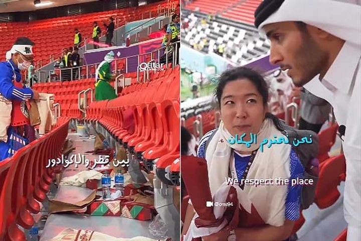 Japanese fans attending the FIFA World Cup 2022 went viral online for their goodwill act. After a thrilling football World Cup match, the folks from Japan cleaned up the stands by picking up plastic bottles and wrappers. The video of the Japanese football fans clearing Doha's Al-Bayt Stadium after the crowd left went crazy viral on the web. Netizens praised the thoughtful action.