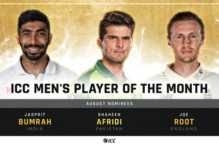 The ICC have announced India's Jasprit Bumrah, Pakistan's Shaheen Shah Afridi and England's Joe Root as the contenders for the Men's Player of the Month award for August 2021. All three players performed well in the longest format of the game last month. Joe Root played three Tests against the Indian team and scored a hundred in each of them. His Indian rival Jasprit Bumrah scalped a total of 15 wickets in the first three Tests