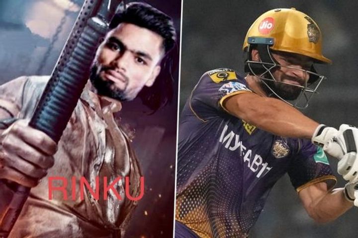 Shah Rukh Khan was all praise for Rinku Singh after the latter smashed five sixes in the last over of KKR's match against Gujarat Titans to win the side the match by three wickets. As plaudits for Rinku Singh flew in from all corners, Shah Rukh Khan took to social media to share an edited poster from his blockbuster movie 'Pathaan'. The morphed poster had Rinku Singh's face instead of his own. JHOOME JO RINKUUUUU !!! My baby @rinkusingh235