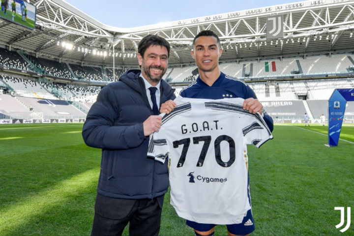 Cristiano Ronaldo was presented with a customized ‘G.O.A.T 770’ shirt by Juventus chairman Andrea Agnelli to celebrate his 770th career goal. The 36-year-old scored a hat-trick against Cagliari last week to surpass Pele's tally of 767 career goals. However, Ronaldo wasn't able to add to his tally on Sunday as Juve lost to Benevento 1-0.