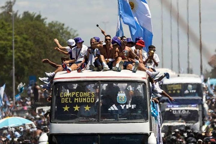 Argentina manager Lionel Scaloni joined wild celebrations as his squad returned home from their victorious FIFA World Cup campaign in Qatar. All the squad members and staff spent the day celebrating on an opentop bus and Scaloni wasn't afraid to join in. All About Argentina tweeted a video of the tactician taking off his shirt and swinging it around in the glorious South American sunshine.