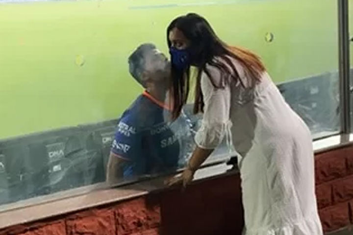 Amidst the joys of the thumping win, Suryakumar Yadav had an adorable moment with his wife Devisha Shetty. The veteran cricketer was seen kissing his beloved spouse, who was present at the venue. Devisha was behind the glass sheet in the stands and Yadav came near her. Yadav then kissed the glass as his wife brought her cheeks in front. The image came to the fore after Sagarika Ghatge posted the same on her Instagram story.