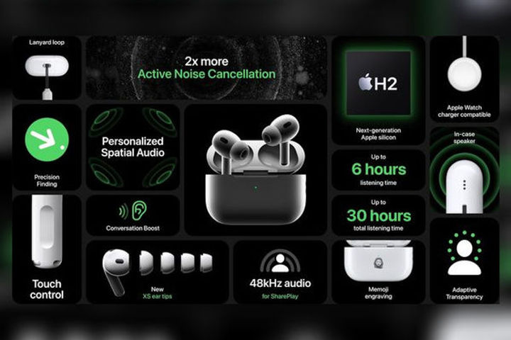 Apple is calling the second-generation AirPods Pro as New AirPods Pro. They look the same as the current-generation earbuds but come with a new H2 chipset and improved active noise cancellation, in fact 2x than current-gen AirPods Pro. Apple is also offering better and personalized spatial audio and new XS-sized eartips. The New AirPods Pro also support Adaptive Transparency Mode that cancels high decibel noise.