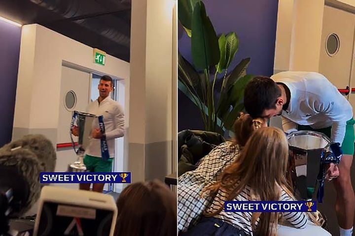 Novak Djokovic celebrates his sixth ATP Title win with loved ones after equalling Roger Federer's record