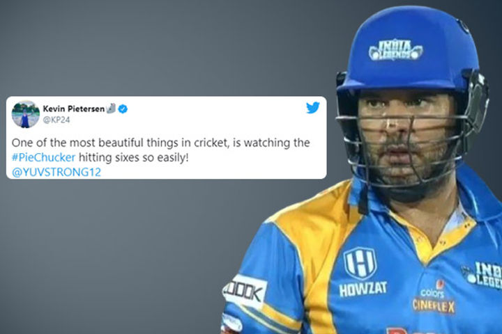 Kevin Pietersen was in awe of Yuvraj Singh after the India Legends all-rounder hit four sixes in an over against South Africa Legends in Match 13 of the Road Safety World Series. Yuvraj Singh turned back the clock when he smashed Zander de Bruyn for four consecutive sixes in the 18th over of the innings. One of the most beautiful things in cricket is watching the #PieChucker hitting sixes so easily, Kevin tweeted.