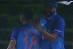 Rohit Sharma pats Virat Kohli on his back after latter’s match-winning half-century