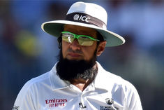 Unwell Aleem Dar walks off the field during Multan ODI