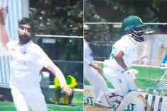 Mohammed Siraj throws the ball back at Temba Bavuma, hits his ankle