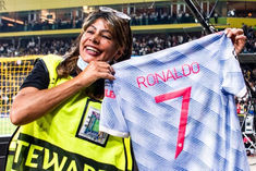 Cristiano Ronaldo gives his shirt to steward after accidentally hitting her during warm-up