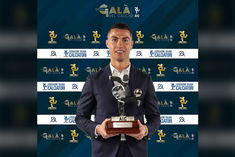 Cristiano Ronaldo reacts after winning Serie A Player of the Year award
