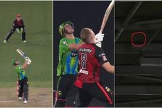 Melbourne stars batter Beau Webster awarded six runs by umpire after his shot hits the marvel stadium roof during BBL game