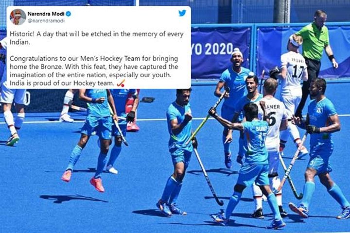 Indian men's hockey team defeated Germany 5-4 in the bronze medal playoff match of the Tokyo Olympics. It was the hockey team's first Olympic medal after 41 years and PM Modi immediately congratulated the team for the 'historic' achievement. Historic! A day that will be etched in the memory of every Indian. Congratulations to our Men’s Hockey Team for bringing home the Bronze, he tweeted.