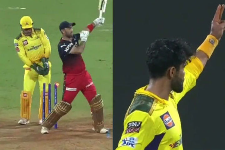 The Chennai Super Kings skipper Ravindra Jadeja roared back to the wickets column in style as he accounted for the hard-hitting Glenn Maxwell. While It is his unique celebrations that stood out the most after having dismissed his Australian counterpart for the seventh time in T20 cricket. A delighted Ravindra Jadeja first put his left index finger up to celebrate before pointing towards his left in what is supposedly a gunshot celebration.