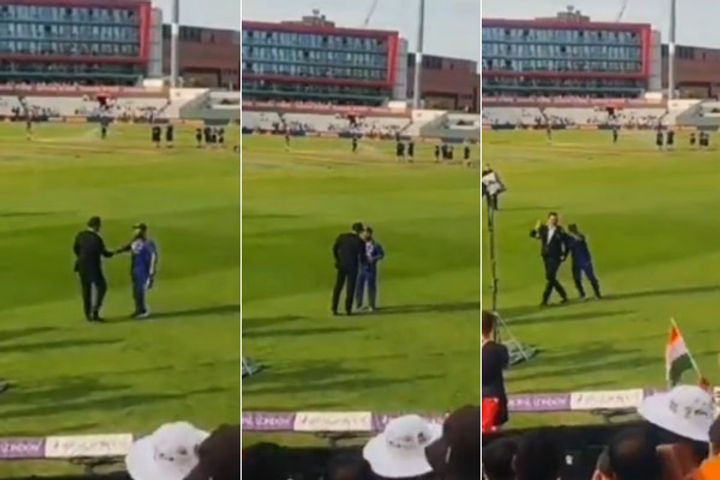 Rishabh Pant gifts Player of the Match champagne bottle to Ravi Shastri
