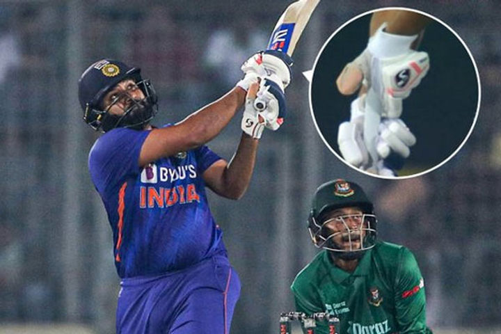 Rohit Sharma cut open his glove to prevent injured thumb from further damage during his brave knock
