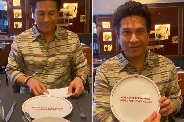Sachin Tendulkar recently showed his romantic side while out on a dinner with wife Anjali. In a video shared by the Master Blaster on Instagram, the cricket icon can be seen sitting in a restaurant. He then holds out a plate with the following lines written on it: "You never know who you'll meet over a slice". The camera then pans towards a smiling Anjali, who was sitting on the opposite side of the table.