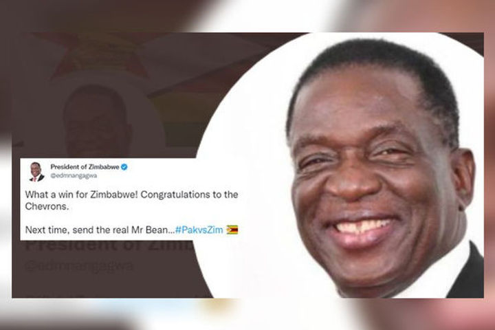 Zimbabwe President Emmerson Mnangagwa on Thursday took to Twitter after the Zimbabwean cricket team beat Pakistan at ICC T20 World Cup 2022 in a last-ball thriller. Taking a dig at Pakistan, Zimbabwe's President wrote "What a win for Zimbabwe! Congratulations to the Chevrons. Next time, send the real Mr Bean…" (sic)