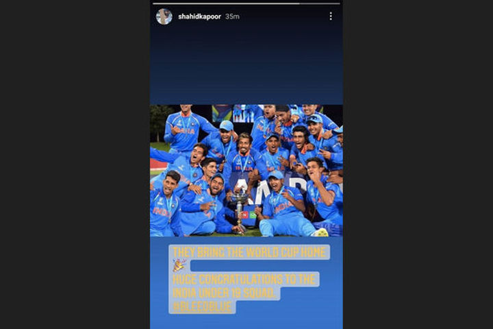 India won a record-extending fifth U-19 World Cup title on February 4. The team won by beating England by four wickets in the final of an astonishing campaign that was almost wrecked by a COVID-19 outbreak. Shahid Kapoor took to Instagram stories to congratulate the team. The thing that, however, caught our eyes was the fact that he used a picture from 2018 to congratulate them.