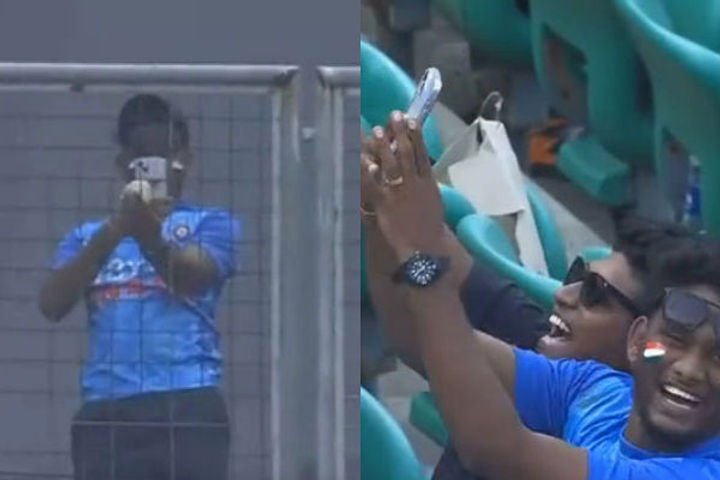 A spectator who had turned up for the third ODI between India and Sri Lanka held up play as he clicked a picture of the match ball after Virat Kohli hit it for a six in the stands off Lahiru Kumara's bowling. The incident happened on the first delivery of the 46th over.